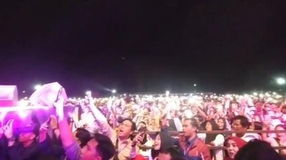 “Habis ini saya request lagu cari jodoh, lagunya spesial buat pak Wakil Bupati Bong Ming Ming yang belum punya jodoh yang keempat,” candanya dihadapan ribuan penonton usai berduet membawakan lagu Yank dengan Wali Band.