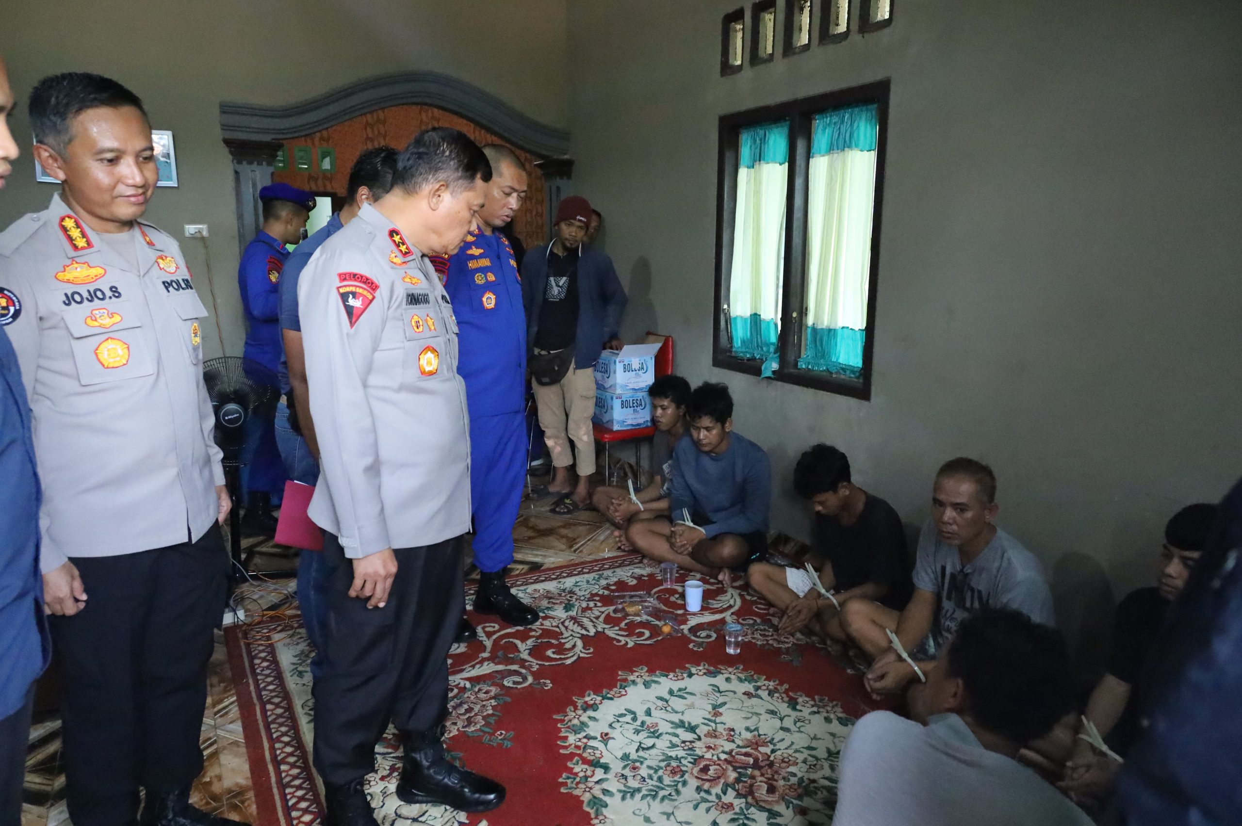 Tersangka yang berhasil diamankan berjumlah sepuluh orang, yaitu S, U, GP, M, IW, SY, J, SS, RA dan A si pemilik rumah.