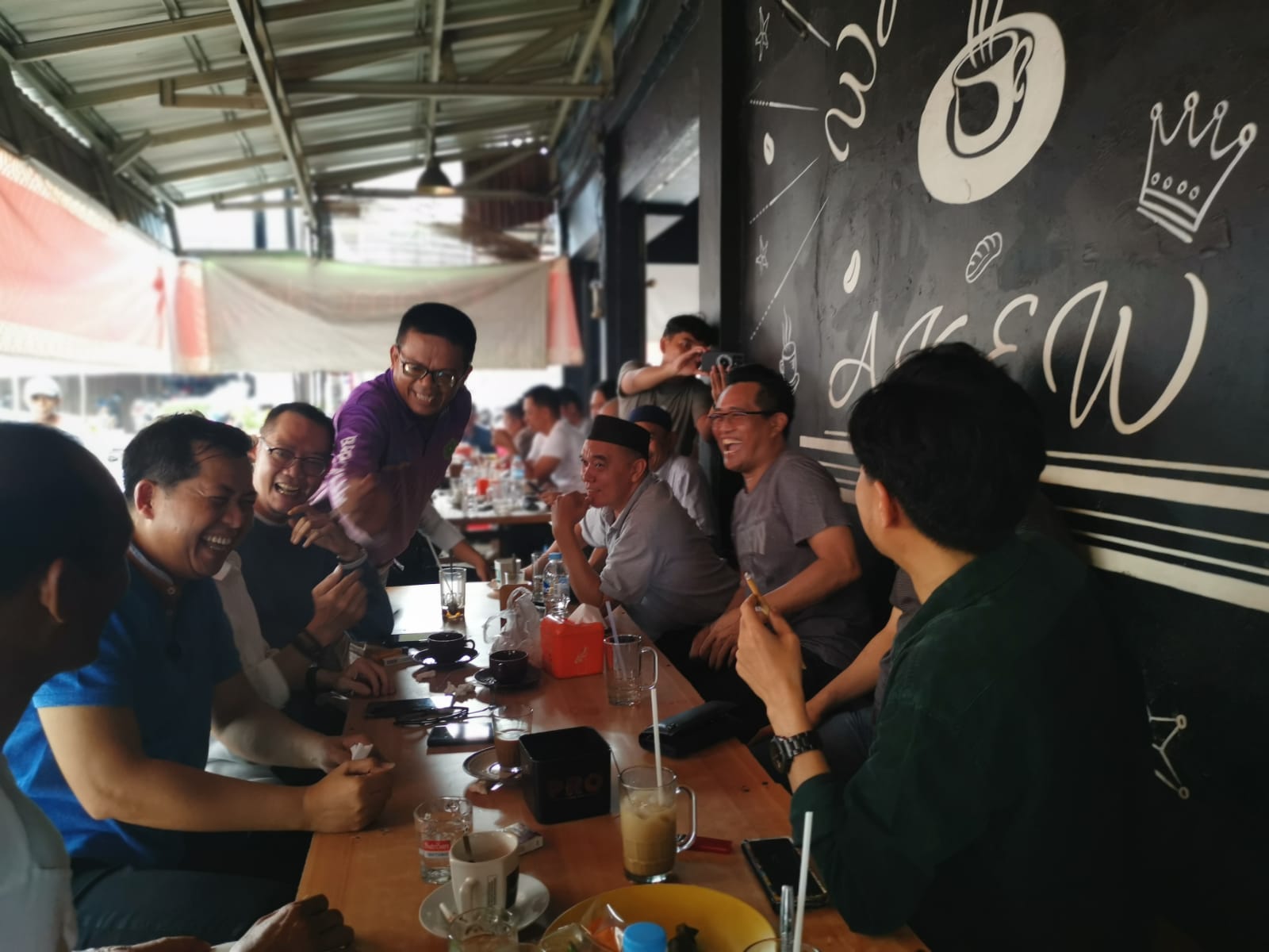 PANGKALPINANG – Suasana Warung Kopi Akew pada Minggu pagi, 24 Mei 2025 terasa lebih semarak. Basit Cinda bakal calon Wali Kota Pangkalpinang datang menyeruput kopi.