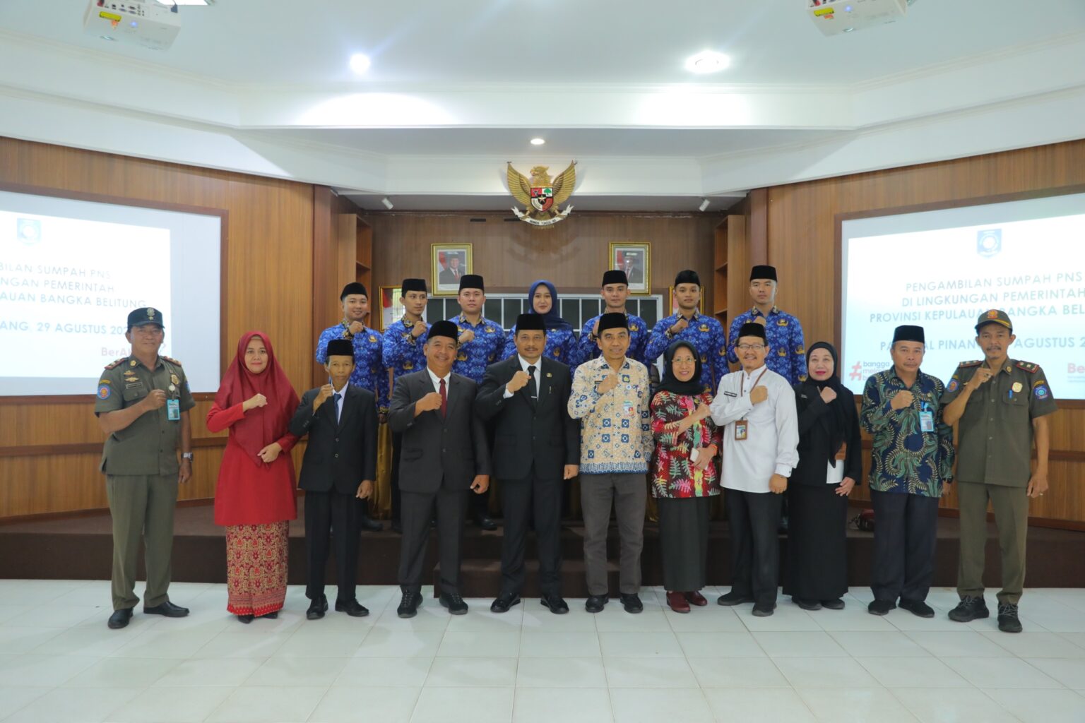 PANGKALPINANG – Sebanyak tujuh orang lulusan Institut Pemerintahan Dalam Negeri (IPDN) resmi dilantik menjadi Pegawai Negeri Sipil (PNS) di lingkungan Pemerintah Provinsi Kepulauan Bangka Belitung. Pelantikan dan pengambilan sumpah jabatan ini digelar pada Jumat (29/8/2025) di Aula Nata Praja Kantor BKPSDMD Babel.