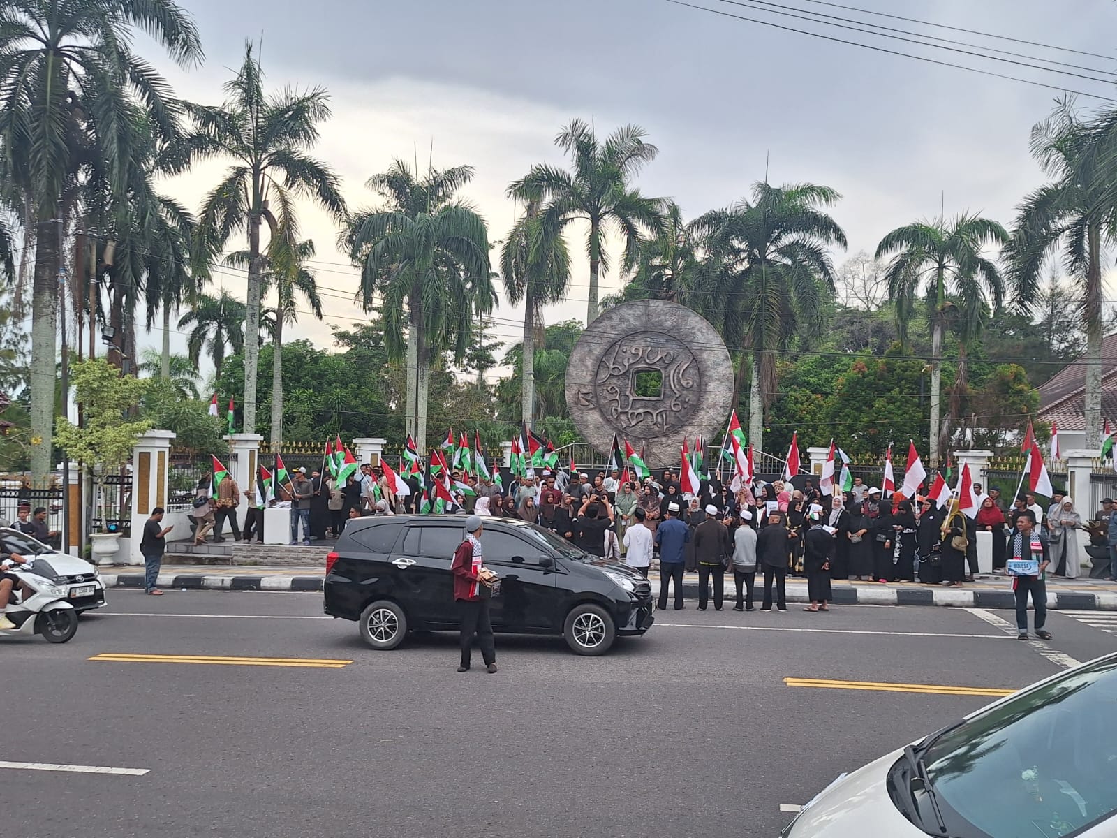 Aksi solidaritas yang berlangsung tertib dan damai itu ditutup dengan sesi foto bersama. Para peserta, termasuk banyak ibu-ibu dan anak muda, berfoto sambil membentangkan bendera Indonesia dan Palestina sebagai simbol persaudaraan dan dukungan terhadap kemerdekaan Palestina.